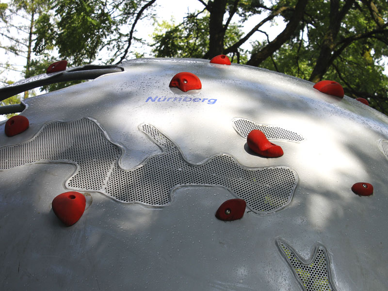 Im Nürnberger Stadtpark dreht sich alles um die Kleinen. Auf der hier angelegten "Straße der Kinderrechte", sollen Kinder ihre Rechte spielerisch kennenlernen. Unter dem Arbeitstitel „Mit Bildung die Welt besteigen“ ist eine Anlage entstanden, die zum Spielen und Entdecken einlädt. Ganz nach dem Motto „Dir steht mit viel Wissen die ganze Welt offen“ gelangt man von der riesigen Büchertreppe auf eine Bücherhängebrücke, die direkt in die „vernetzte“ große Weltkugel führt. Aber auch von außen ist es dank der gut erkennbaren Kontinente mit den vielen Klettergriffe die Hauptstädte darstellen möglich, die Welt zu erkunden.