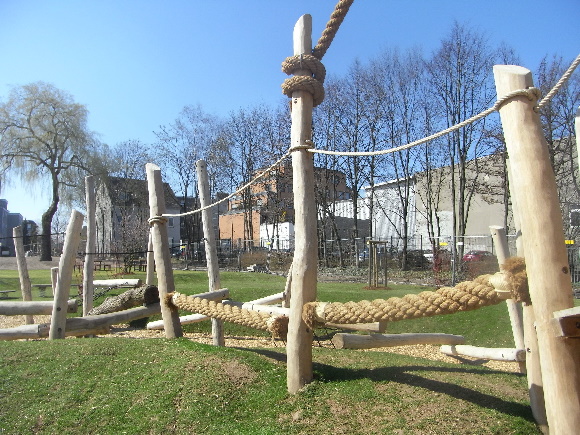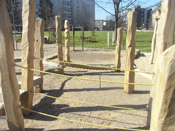 Unter Beachtung der Wünsche entstanden ein Spielbereich mit Kletteranlagen und ein Schaukelpark ebenso wie ein Sportbereich als ausdrücklicher Wunsch der Jugendlichen.