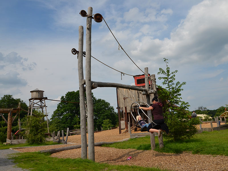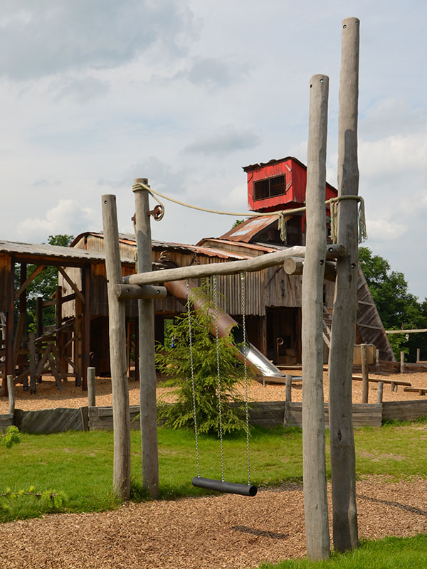 Ein komplettes Sägewerk mit angeschlossener Goldmine als Spieleparadies im Wildpark Reken