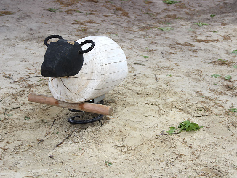 Begleitend gibt es noch ein wildes Schaukel-Zebra und eine Sandtransportbahn mit einem verschiebbaren Sandeimer.